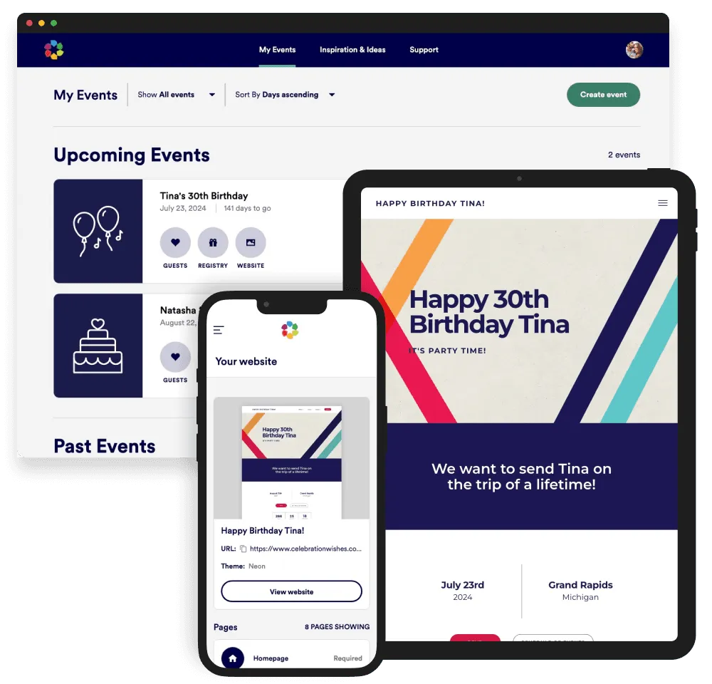 Choose from one of our customizable event websites, invitations and registries. Select real gifts and ideas from the destinations to make your celebration wish come true.